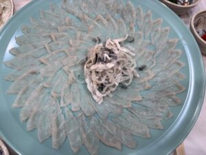 日頃はとても食べれない、見事なフグ刺しあり、